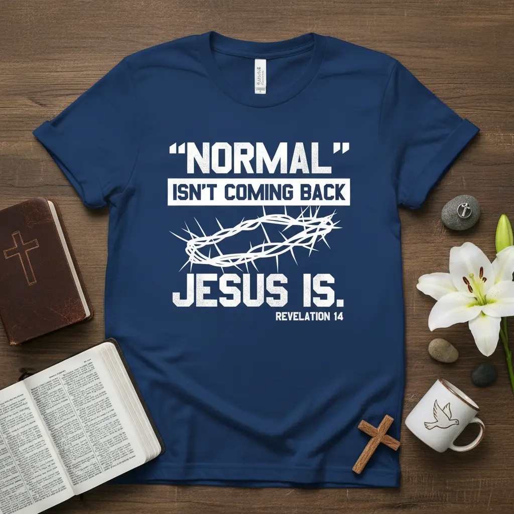 Don’t miss the opportunity to own this powerful piece of Christian apparel. The “Normal” Isn’t Coming Back Jesus Is. Revelation 14 t-shirt is more than just clothing; it’s a wearable sermon, a symbol of steadfast faith, and a beacon of hope in a changing world. It’s time to embrace your beliefs and let them shine. Order yours today and spread the message of enduring hope!