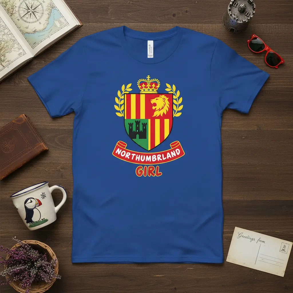 Pick from Black, Navy, Royal, Dark Heather, Red, and White to match your mood and wardrobe staples. Each colorway keeps the NORTHUMBERLAND GIRL design clear and photo-ready for everyday wear.