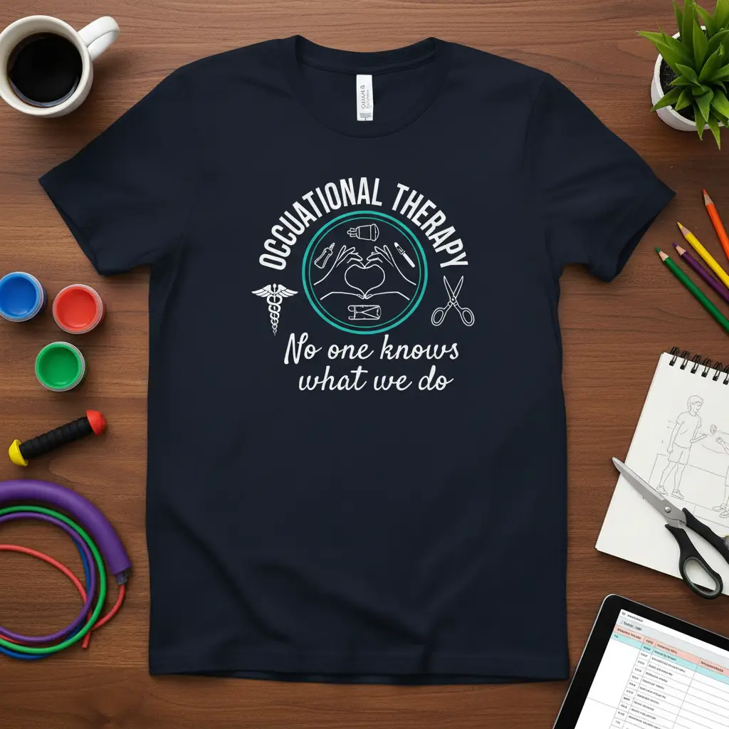 Occupational therapists play a critical role in helping individuals regain independence and improve their quality of life. They work with people of all ages facing physical, developmental, emotional, or social challenges. This “No one knows what we do” t-shirt celebrates the often-underestimated expertise and dedication of these professionals.