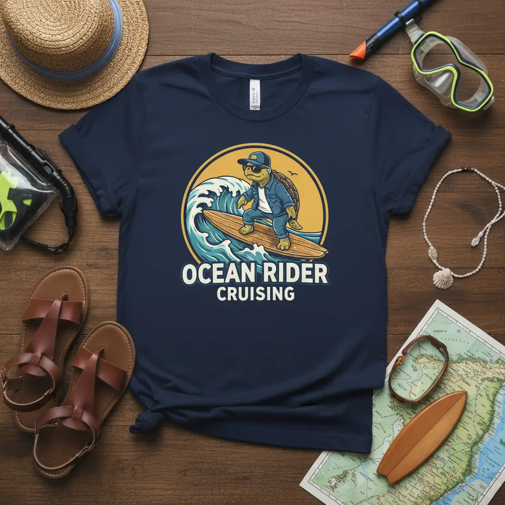 This t-shirt is ideal for anyone who dreams of the beach, loves surfing, or simply enjoys the laid-back vibes of coastal living. The “OCEAN RIDER CRUISING” text adds a bold declaration to the design, making it clear that you’re ready for your next aquatic escapade. The cheerful artwork and clear messaging make this shirt a standout choice for any occasion.