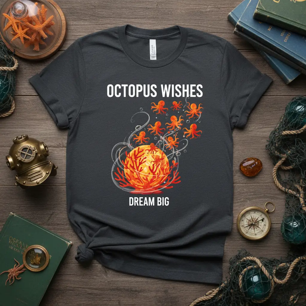 Pick from Black, Navy, Royal, Dark Heather, Red, and White to match your mood and wardrobe staples. Each colorway keeps the OCTOPUS WISHES DREAM BIG design clear and photo-ready for everyday wear.