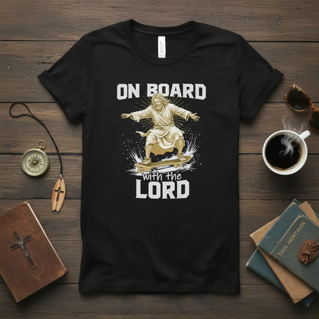 Embrace Faith: The “On Board with the Lord” Skateboarding T-Shirt