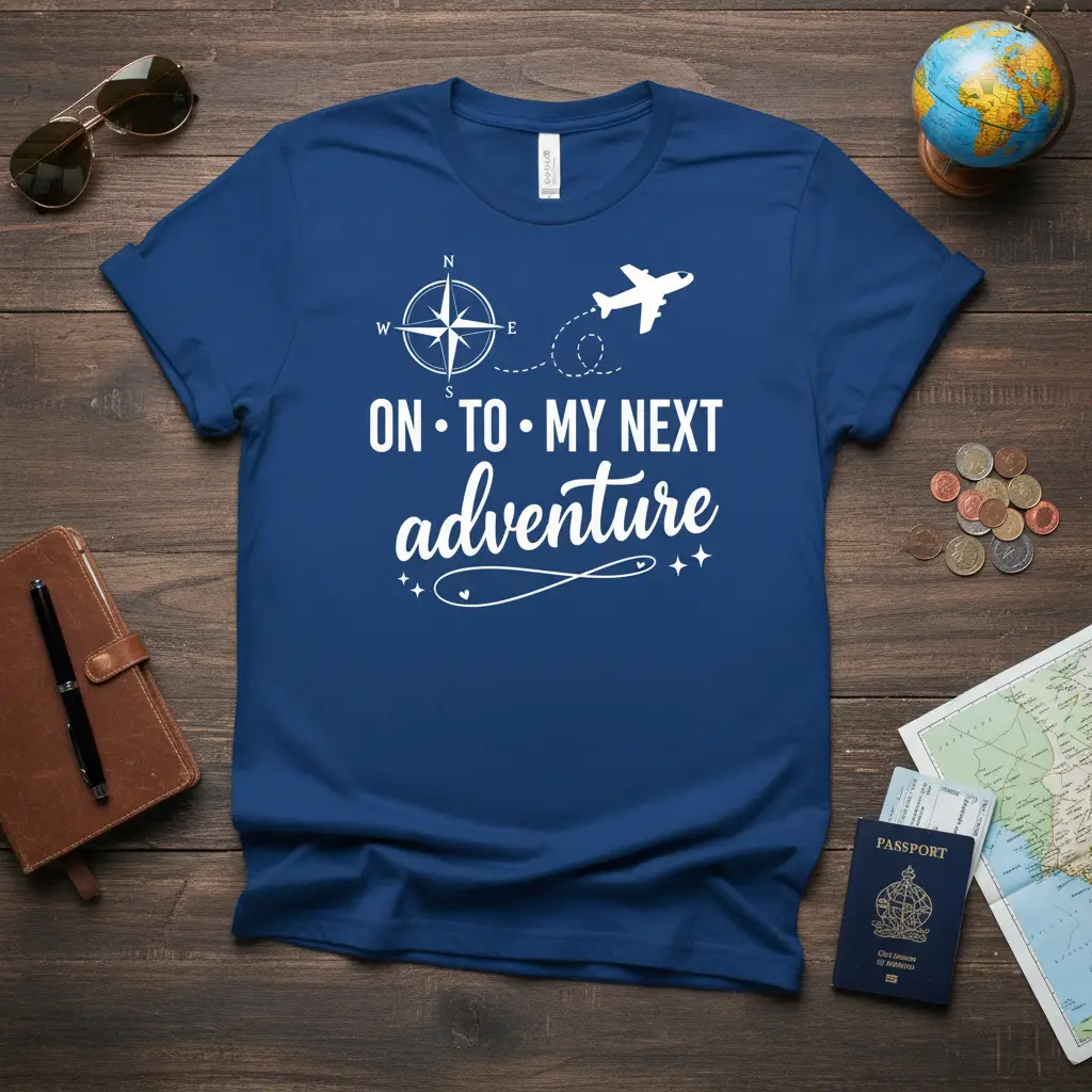 This “On To My Next Adventure” tee is more than just a piece of clothing; it’s a symbol of your adventurous spirit. It’s perfect for those who dream of distant lands and exciting escapades. The design is versatile, pairing effortlessly with jeans, shorts, or even layered under a jacket for cooler evenings. It embodies the freedom and joy that travel brings into our lives, making it a must-have for any globetrotter.
