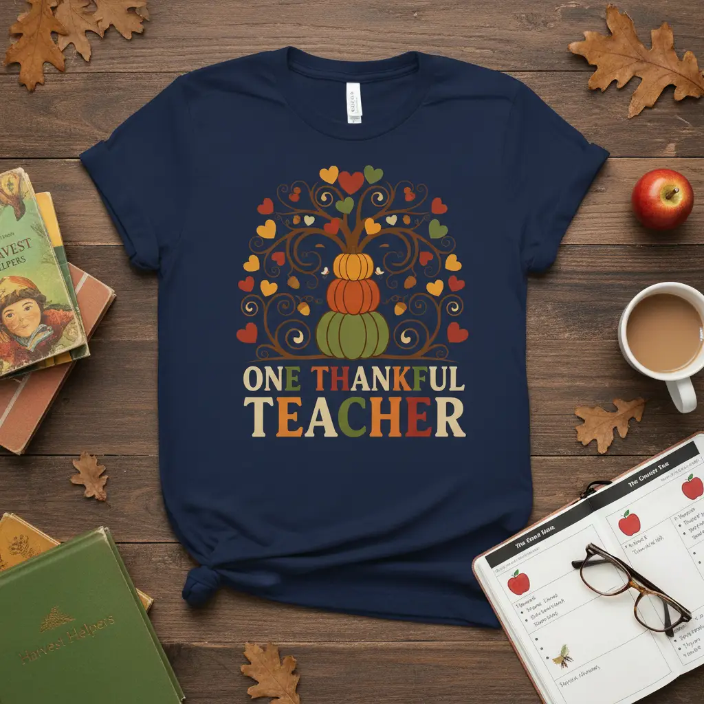 Show your appreciation with the “One Thankful Teacher” t-shirt, perfect for educators during the fall season. This comfortable tee features a heartwarming design, making it a wonderful gift to celebrate the dedication of teachers. It’s a great way to express gratitude and add a touch of autumn spirit to any wardrobe.