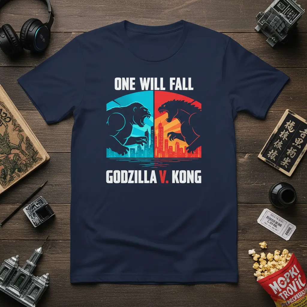 ONE WILL FALL GODZILLA V. KONG design is here to let you showcase your passion for the ultimate cinematic monster showdown. This t-shirt is crafted for fans who appreciate the epic battles between these legendary titans. It captures the raw intensity and sheer power of a conflict that has captivated audiences for generations. If you live for the roars, the city-shattering impacts, and the thrill of a kaiju clash, this shirt is designed for you.
