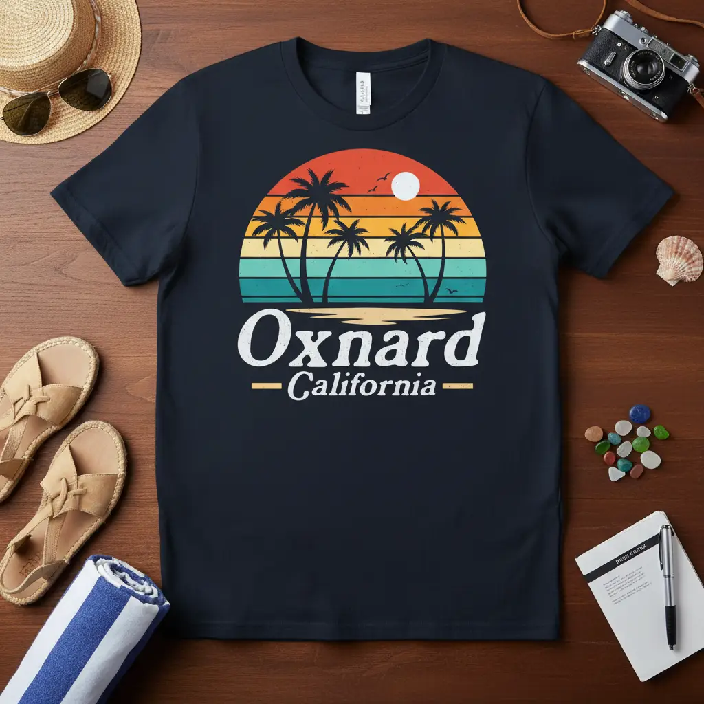 Oxnard California vibes are captured perfectly on this stylish and comfortable t-shirt, designed for anyone who loves the golden state’s coastal charm. This tee brings the essence of a perfect beach day right to your wardrobe, featuring a classic retro sunset scene complete with swaying palm trees. It’s more than just apparel; it’s a wearable memory of sun-drenched shores and ocean breezes. This design is ideal for locals and tourists alike, making it a fantastic souvenir or a daily reminder of your favorite beach destination.