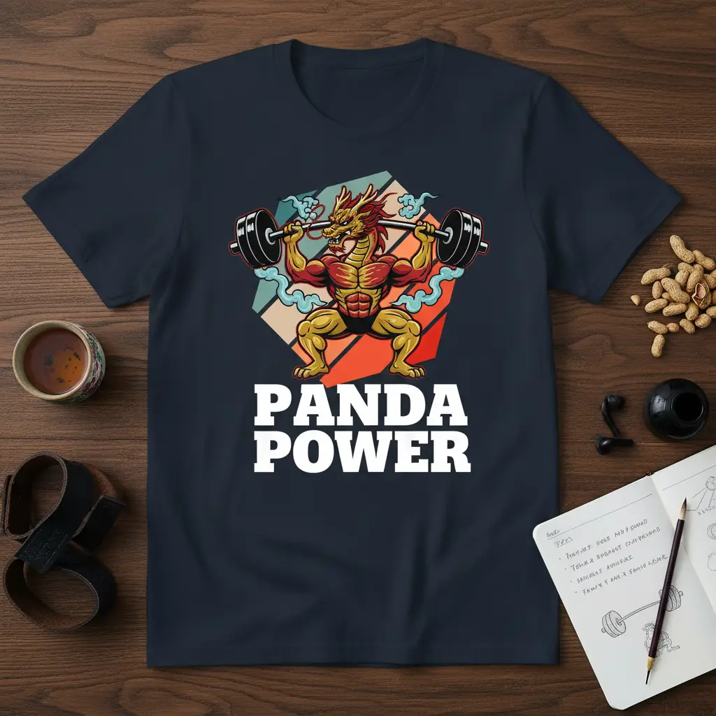 PANDA POWER is more than just a slogan; it’s a declaration of your commitment to strength, resilience, and pushing your limits. This unique t-shirt design features a formidable dragon, muscles rippling as it expertly lifts a heavy barbell, embodying the raw energy and determination required for peak physical performance. The bold “PANDA POWER” text serves as a constant reminder of the incredible strength you possess, both in the gym and in life. Whether you’re a seasoned athlete or just starting your fitness journey, this tee is designed to inspire and motivate you every step of the way.