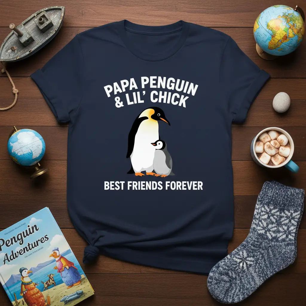 PAPA PENGUIN & LIL’ CHICK BEST FRIENDS FOREVER This heartwarming t-shirt is designed to celebrate the incredibly special bond between a father and his child. Featuring a sweet penguin illustration, this garment is more than just apparel; it’s a wearable declaration of love and enduring companionship. It perfectly captures the essence of a father’s protective nature and a child’s joyful dependence, making it an ideal gift for any dad who cherishes these moments. The comforting message resonates deeply, reminding us of the unbreakable ties that connect families.