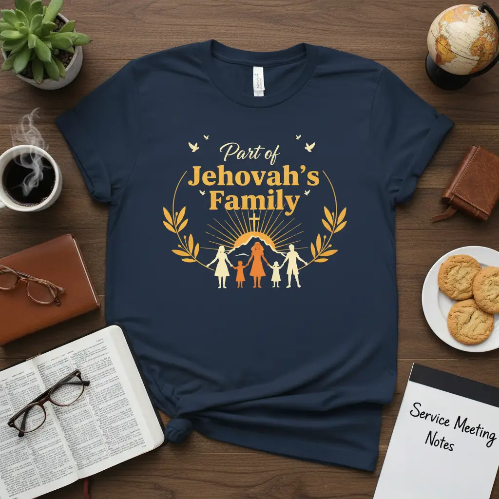The “Part of Jehovah’s Family” T-Shirt is more than just clothing; it’s a statement of identity and belonging. It’s an invitation to connect with others who share your spiritual path and to wear your devotion with pride. This tee is perfect for anyone looking to deepen their connection with their faith community and express their spiritual journey outwardly. Don’t miss out on this opportunity to own a piece that truly speaks to your heart and soul. Order yours today and wear your faith proudly!