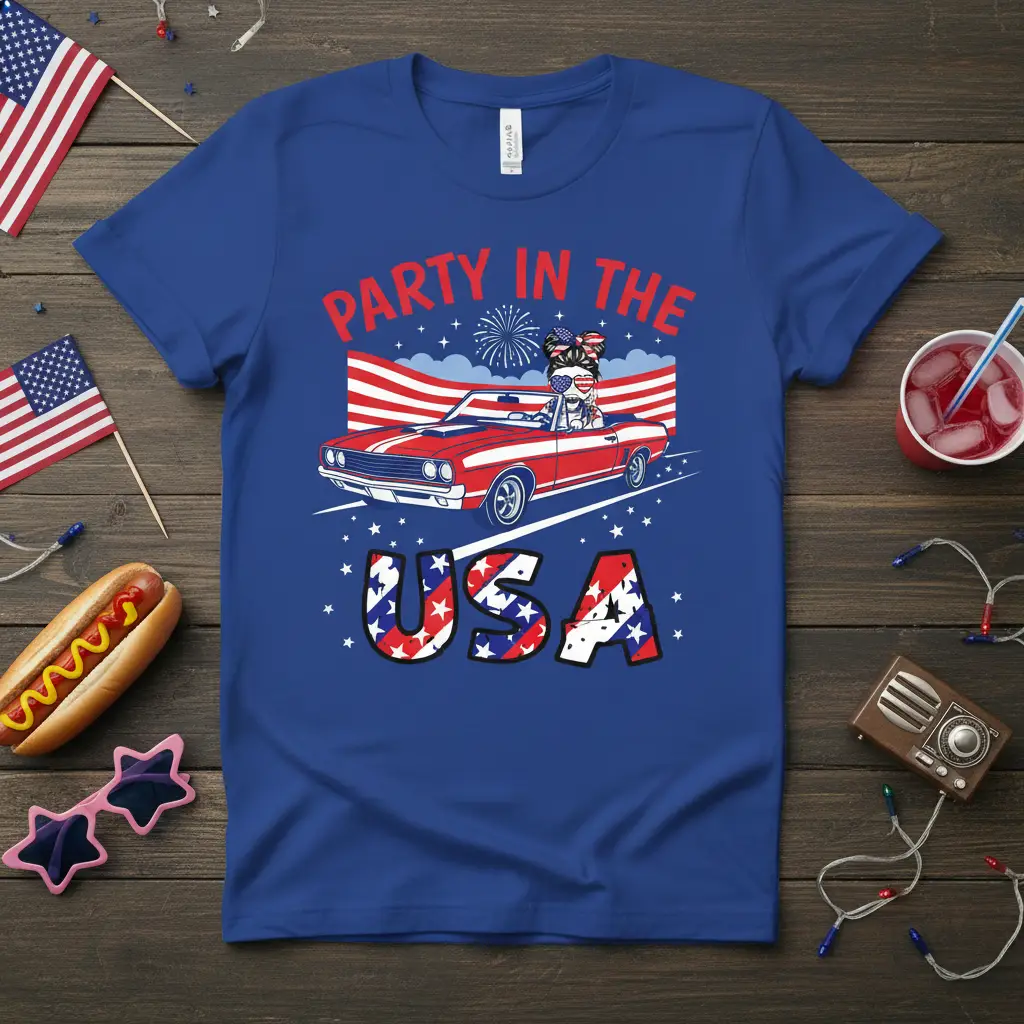 The unique graphic combines a vintage feel with modern design elements, appealing to a broad range of tastes. It’s a versatile piece that can be dressed up or down, fitting seamlessly into any casual outfit. This Party In The USA design isn’t just for one day; it’s a celebration of American spirit that you can wear year-round to express your pride.