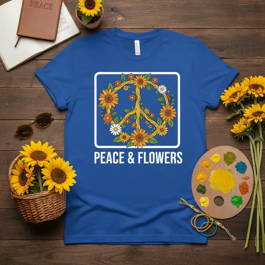 Peace & Flowers T-Shirt: Embrace Boho and Retro Vibes