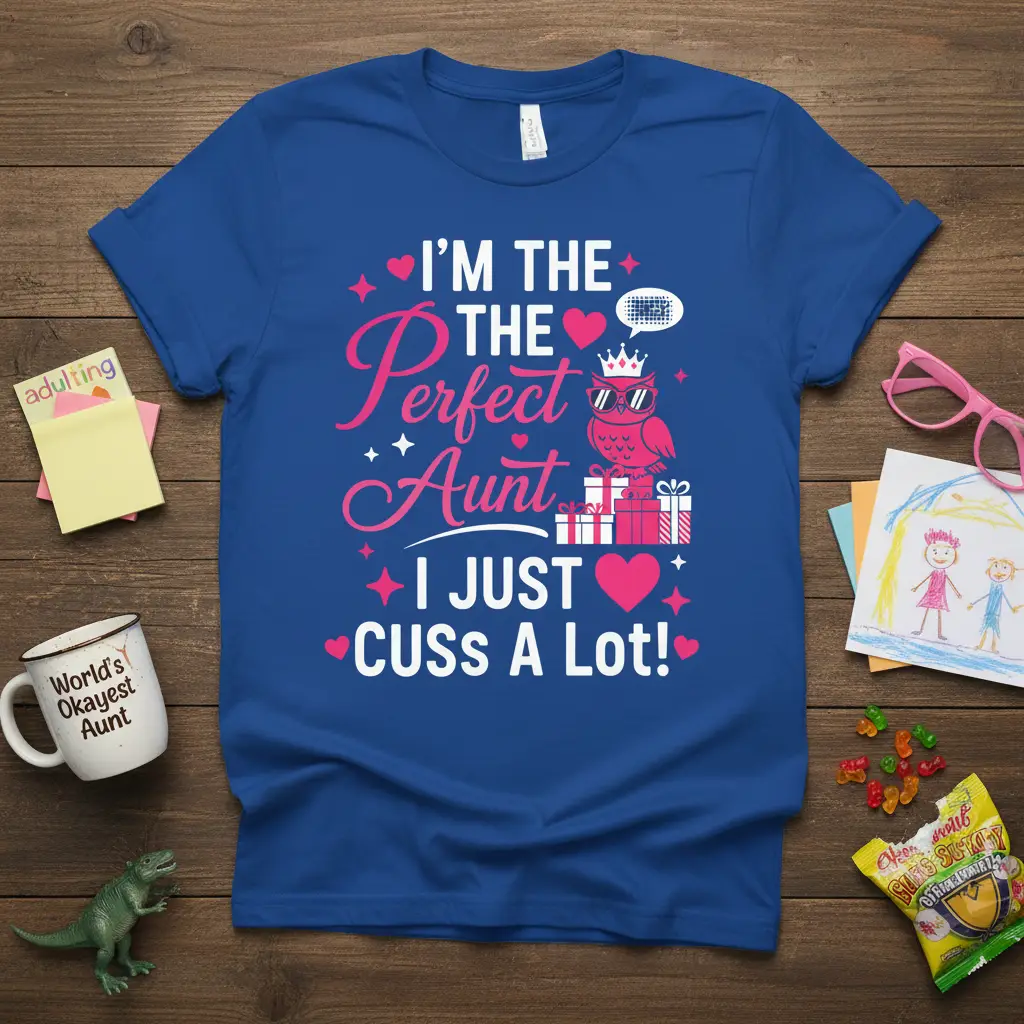I’m The Perfect Aunt I Just Cuss A Lot design is here to help you express your unique personality with a touch of humor and undeniable aunt charm. This shirt is more than just apparel; it’s a statement piece for the aunt who is loved, appreciated, and perhaps a little bit naughty. It’s designed for those who understand that being the “perfect” aunt sometimes involves a little bit of colorful language, delivered with a wink and a smile. Perfect for gifting or treating yourself, this tee is sure to become a favorite in any aunt’s wardrobe.