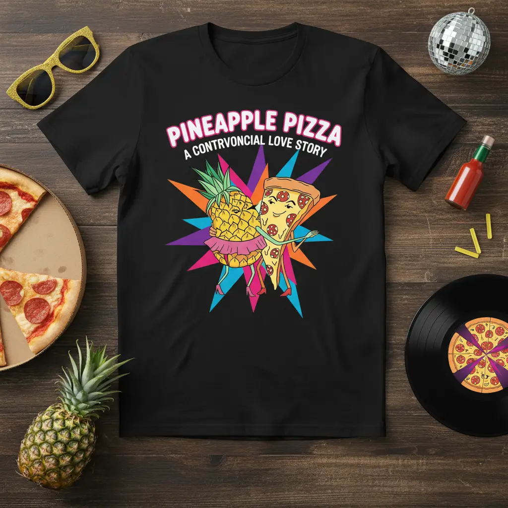 Pick from Black, Navy, Royal, Dark Heather, Red, and White to match your mood and wardrobe staples. Each colorway keeps the Pineapple Pizza A Contrvoincial Love Story design clear and photo-ready for everyday wear.