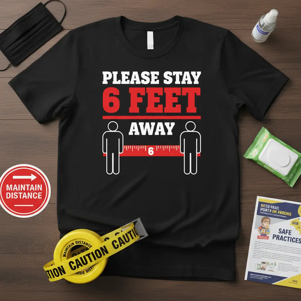 This t-shirt is more than just clothing; it’s a statement of care and responsibility. By wearing the “PLEASE STAY 6 FEET AWAY” design, you actively participate in promoting a safer atmosphere. It’s a simple yet powerful way to contribute to public health efforts and show your solidarity.