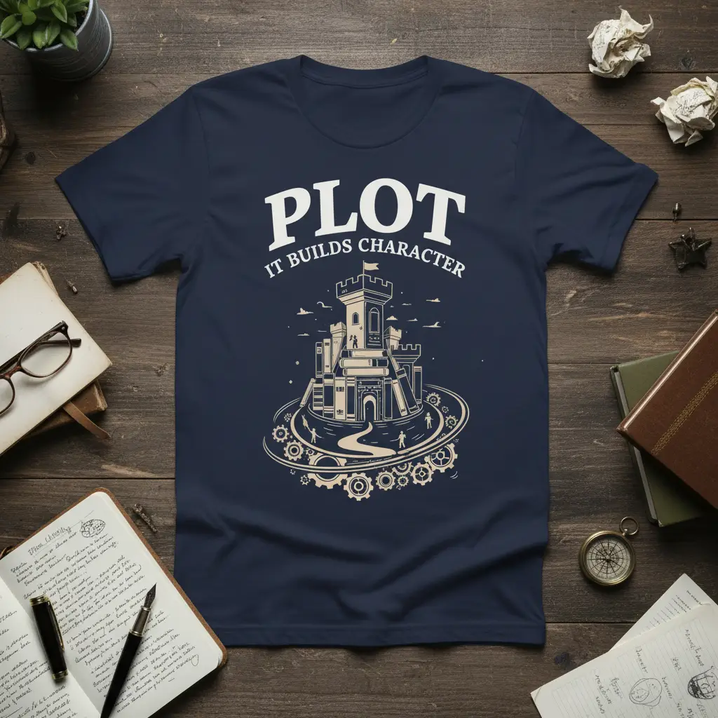 This PLOT IT BUILDS CHARACTER design serves as a powerful statement piece for anyone who understands the magic of a good story. It highlights the often-underappreciated element of plot, emphasizing its crucial role in character evolution and narrative satisfaction. It’s a piece that embodies the spirit of creativity and the dedication required to bring fictional worlds and their inhabitants to life.