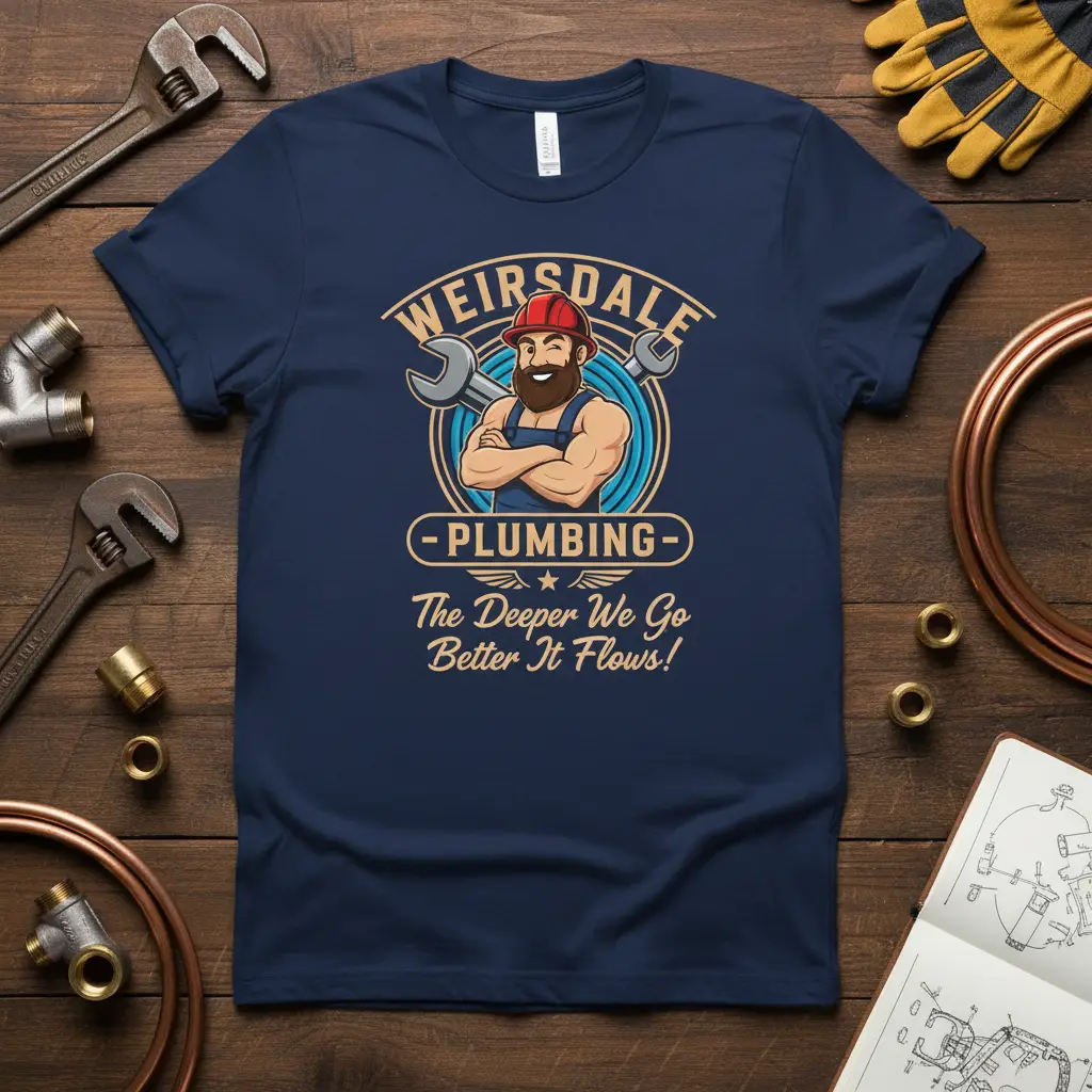 The “WEIRSDALE PLUMBING” text above the graphic adds a personalized touch, suggesting a trusted local business or a nod to the heritage of plumbing. This shirt is not just apparel; it’s a statement of pride in a vital profession. It’s designed for comfort, making it perfect for long days on the job or casual wear.