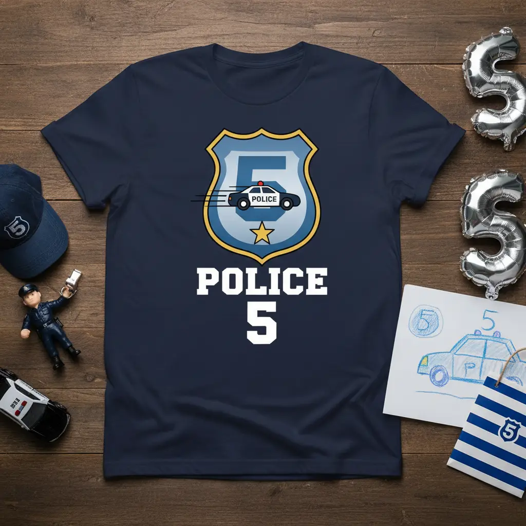 This Police 5 t-shirt transcends the typical birthday attire; it’s an invitation to adventure. It’s perfect for sparking imaginative play sessions, encouraging your child to become a brave officer. The durable print and comfortable fabric mean this shirt can be a favorite long after the birthday candles are blown out, becoming a go-to for playdates and outings.