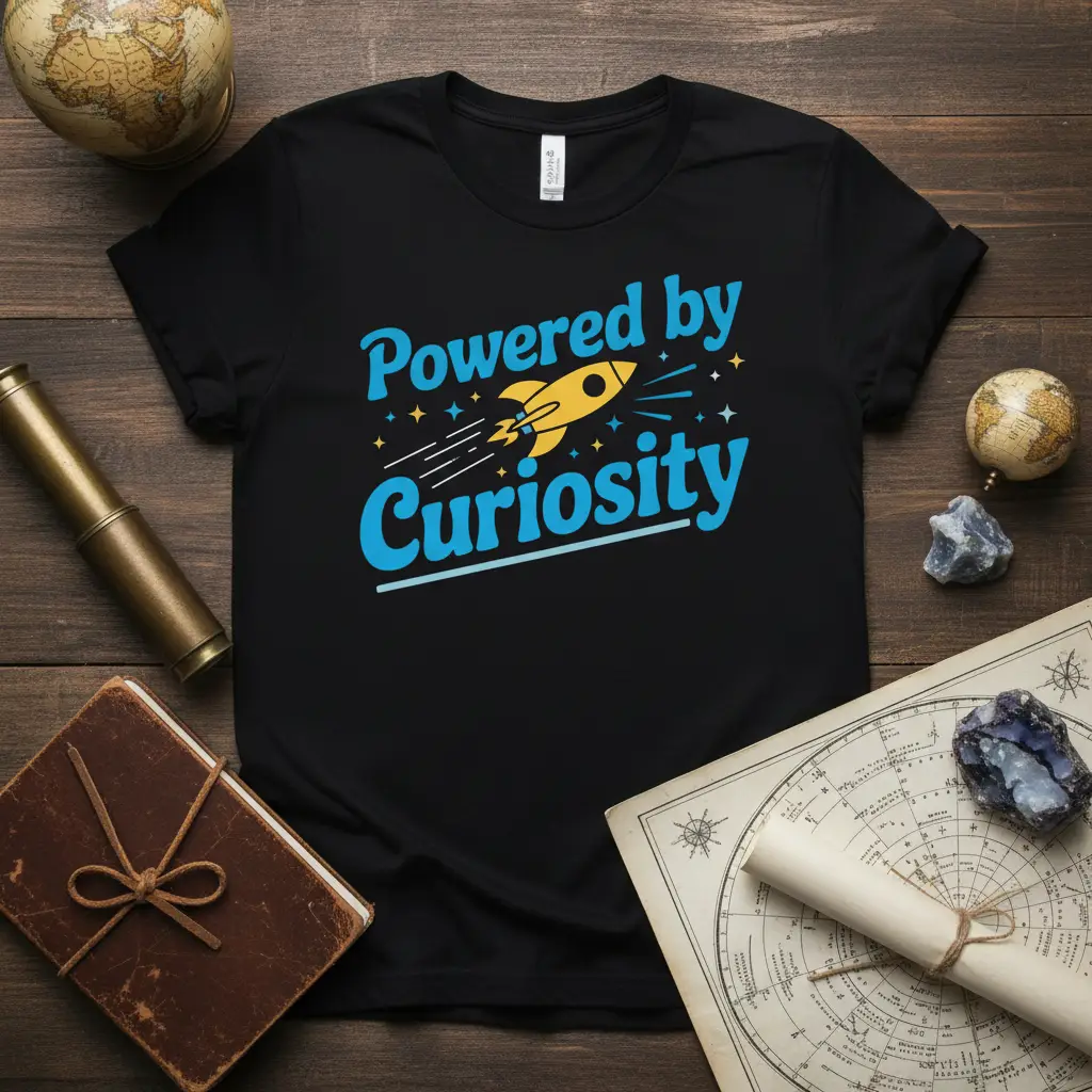 The “Powered by Curiosity” tee is designed to inspire and uplift. It’s a perfect gift for birthdays, holidays, or just as a special treat for the curious individual in your life. The message is universally appealing, encouraging everyone to nurture their innate curiosity. This shirt is more than just apparel; it’s a wearable philosophy for those who believe that learning is a lifelong adventure. Let this design be your daily inspiration to look beyond the ordinary and explore the extraordinary.