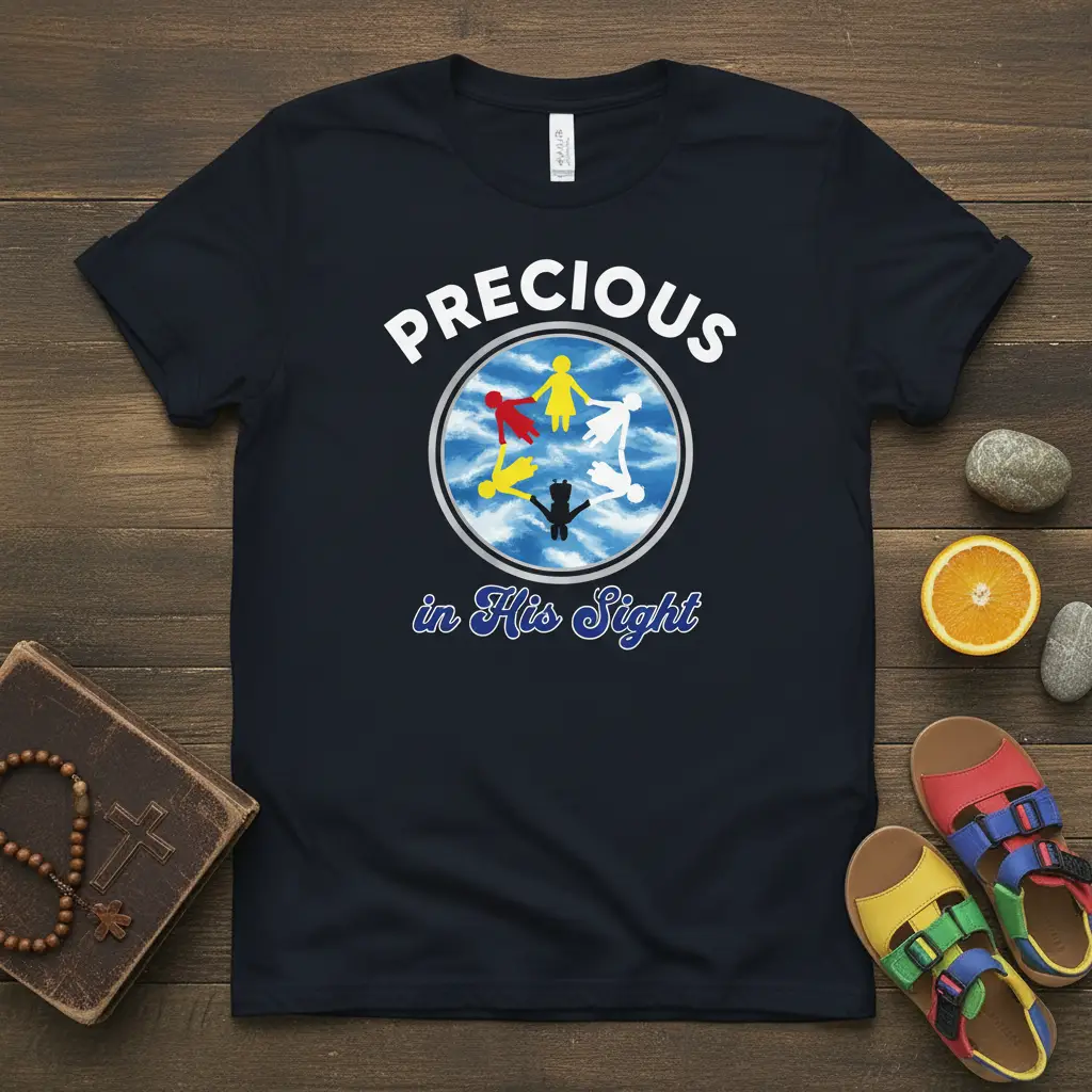 Pick from Black, Navy, Royal, Dark Heather, Red, and White to match your mood and wardrobe staples. Each colorway keeps the Precious in His Sight design clear and photo-ready for everyday wear.