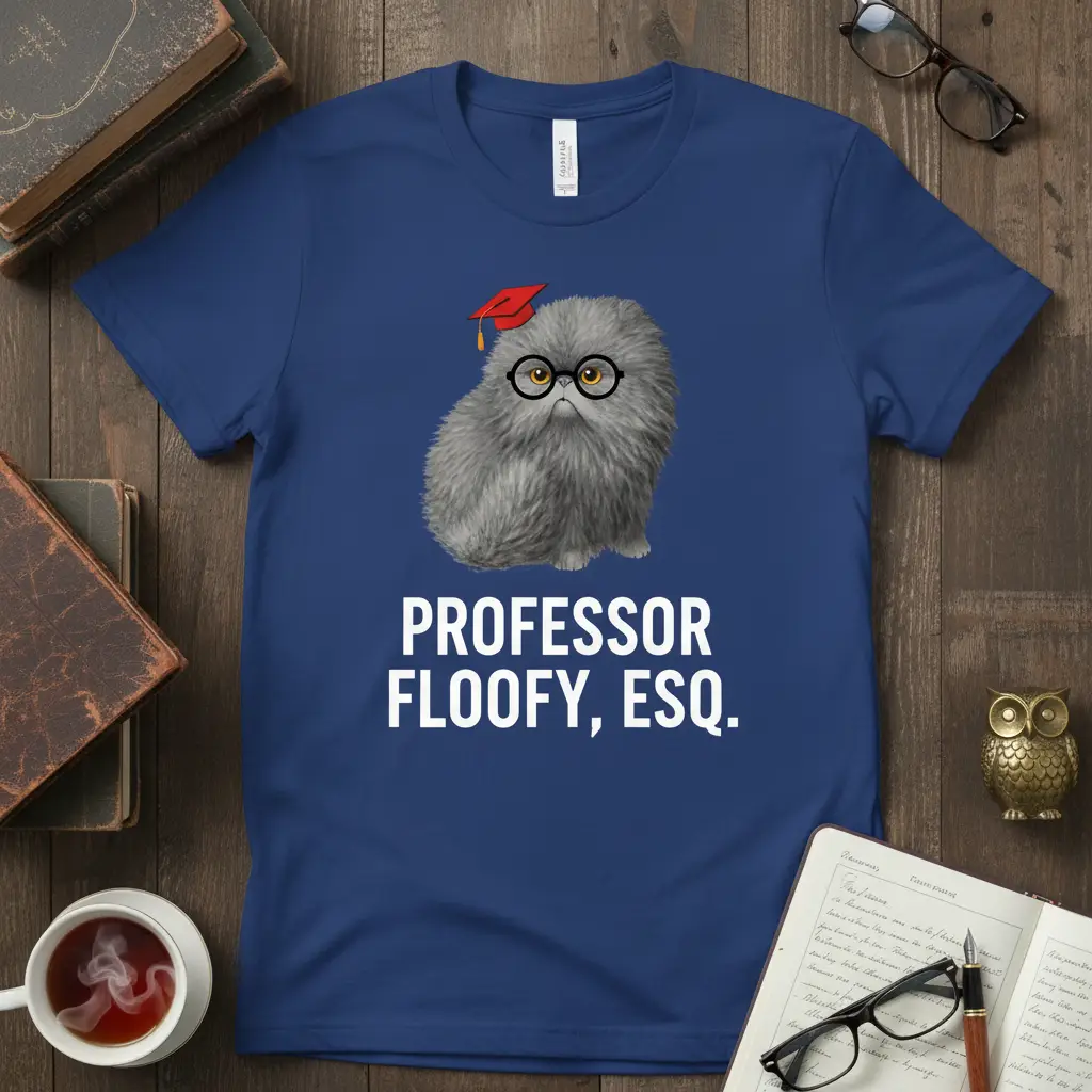Each element of the Professor Floofy Esq design has been meticulously chosen to create a visually appealing and meaningful garment. The bold typography ensures the message is clear, while the detailed illustration of the fluffy cat adds a layer of personality and warmth. This shirt is ideal for anyone looking to add a touch of humor and intellect to their wardrobe, making it a memorable addition.