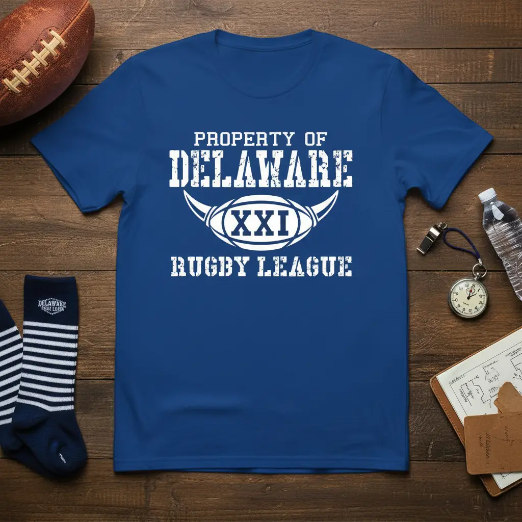 Property of Delaware XXI Rugby League T-Shirt is designed for passionate fans and dedicated players who want to showcase their unwavering support. This apparel is more than just clothing; it’s a statement of belonging and pride for the Delaware rugby community. Crafted for comfort and durability, it’s perfect for game days, training sessions, or casual wear.