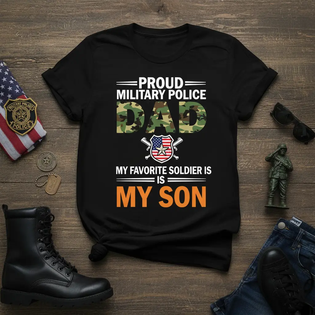This design encapsulates the immense pride a Military Police father feels for his son, who is his favorite soldier. It speaks to a shared journey of service, discipline, and honor. The shirt is a tangible representation of this special bond, perfect for Father’s Day, birthdays, or simply as a token of appreciation for the sacrifices made by both father and son. The visual elements are carefully chosen to convey strength, patriotism, and deep familial love.
