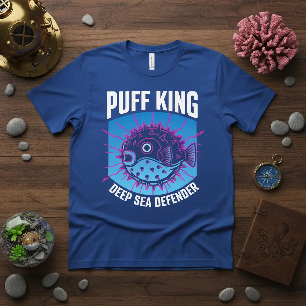 PUFF KING DEEP SEA DEFENDER design is here to make a splash and declare your love for the ocean’s most formidable, yet adorable, inhabitants. This t-shirt isn’t just apparel; it’s a statement piece for anyone captivated by the mysterious beauty of the underwater world. Featuring a dynamic graphic and bold text, it captures the essence of marine life and the spirit of protection for our precious seas. It’s an ideal choice for casual wear, beach outings, or as a thoughtful gift for the ocean enthusiast in your life.