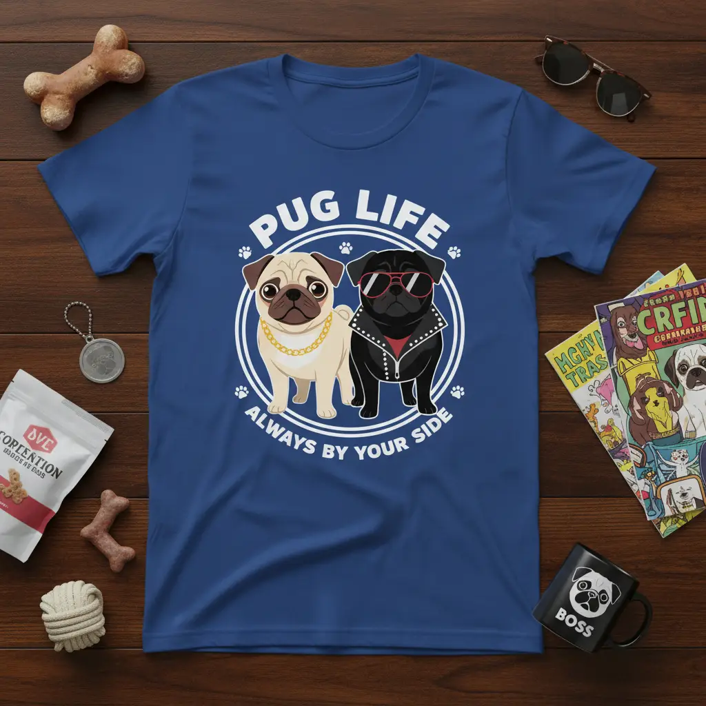 The “Pug Life Always By Your Side” t-shirt is designed to be a favorite in your collection. Its unique graphic appeals to a wide audience, from seasoned pug owners to admirers of the breed. The combination of playful text and charming imagery creates a look that is both fun and fashionable. It’s the perfect way to add a touch of personality to your casual outfits, making a statement without saying a word. This shirt is a testament to the love and laughter that pugs bring into our lives every single day.