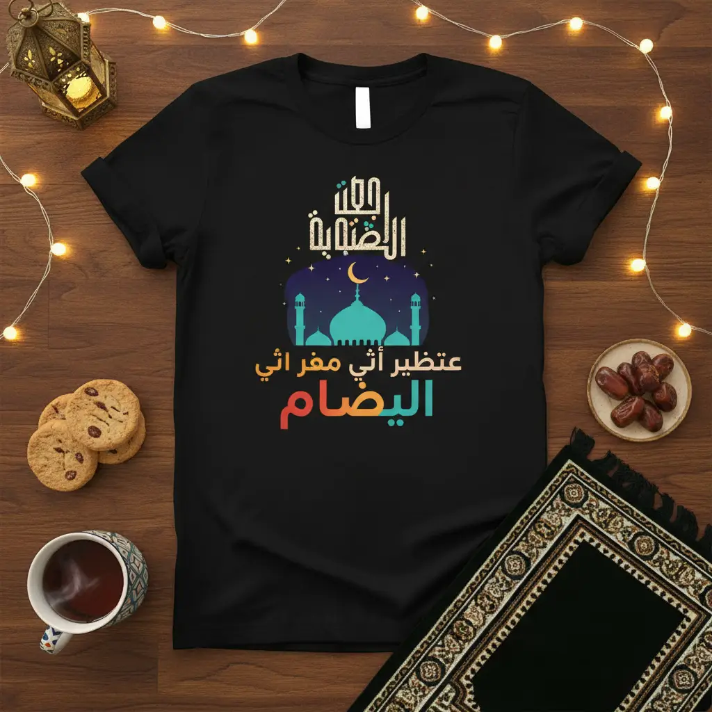 The visual elements of the design, including the mosque and the night sky, evoke a sense of peace and contemplation. This أظن أني مفراشي ليصام design is perfect for wearing to Iftars, Taraweeh prayers, or any casual gathering during Ramadan. It’s a conversation starter and a way to share your faith with the world around you.