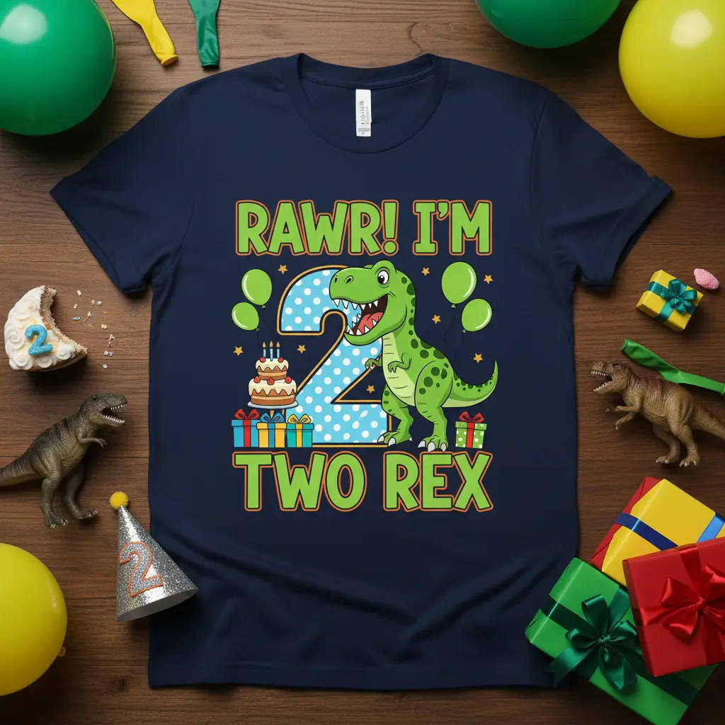 Rawr I’m Two Rex Dinosaur Birthday Shirt for Toddlers