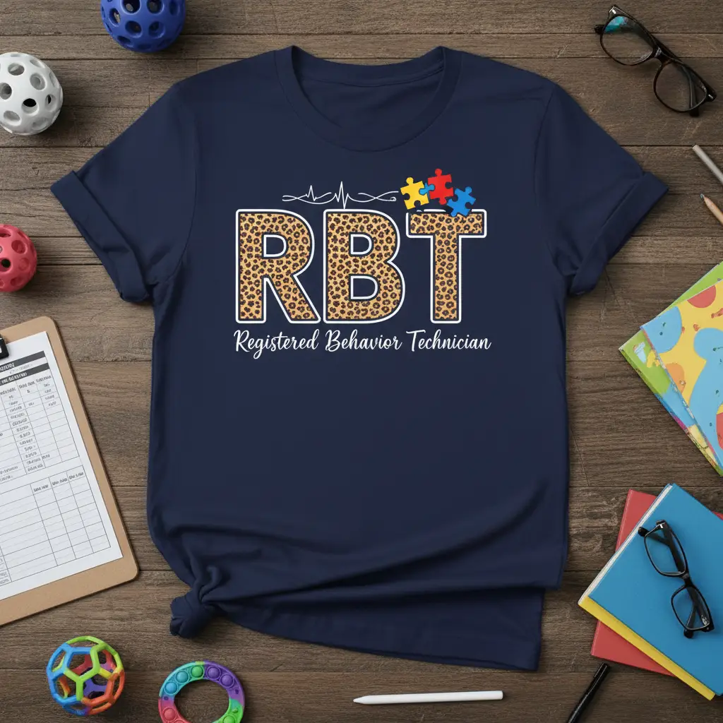 RBT Registered Behavior Technician apparel is more than just clothing; it’s a statement of dedication and passion for making a positive impact. This unique t-shirt celebrates the vital work of Registered Behavior Technicians, recognizing their commitment to behavioral analysis and support. Designed with both style and comfort in mind, it features a striking leopard print “RBT” graphic paired with the meaningful autism puzzle pieces. It’s the perfect way for RBTs and ABA therapists to showcase their profession and support the autism community with pride.