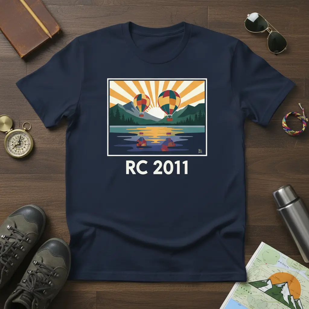 RC 2011 emblazoned on this t-shirt invites you to embrace a spirit of adventure and nostalgic travel. This unique design features a captivating graphic of hot air balloons drifting over a picturesque mountain lake, bathed in the warm glow of a stylized sunrise. It’s more than just apparel; it’s a wearable story that speaks to the soul of explorers, dreamers, and anyone who cherishes the thrill of discovery. Perfect for casual outings or your next grand adventure, this tee combines comfort with a timeless aesthetic.