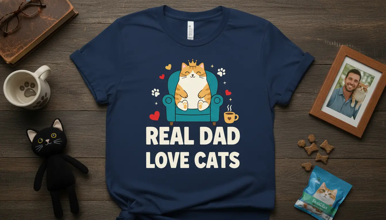 Pick from Black, Navy, Royal, Dark Heather, Red, and White to match your mood and wardrobe staples. Each colorway keeps the REAL DAD LOVE CATS design clear and photo-ready for everyday wear.