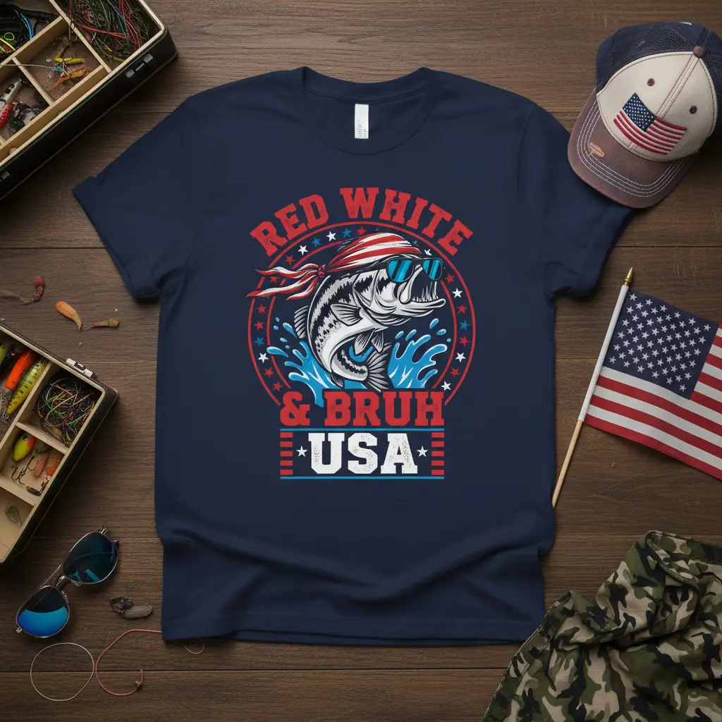 Red White & Bruh USA T-Shirt: The Ultimate Patriotic Fishing Gear