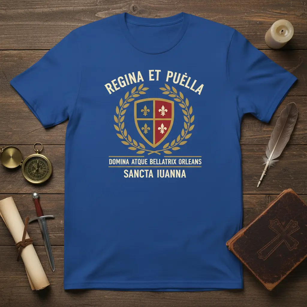 Regina et Puella Domina atque Bellatrix Orleans Sancta Iuanna embodies a powerful spirit of faith, royalty, and unwavering resolve. This design speaks to the inner strength found in devotion, celebrating the qualities of a queen and a warrior united. It’s more than just apparel; it’s a statement of belief and courage, perfect for those who carry their convictions with grace and power. Wear it as a reminder of your own inner fortitude and divine connection.