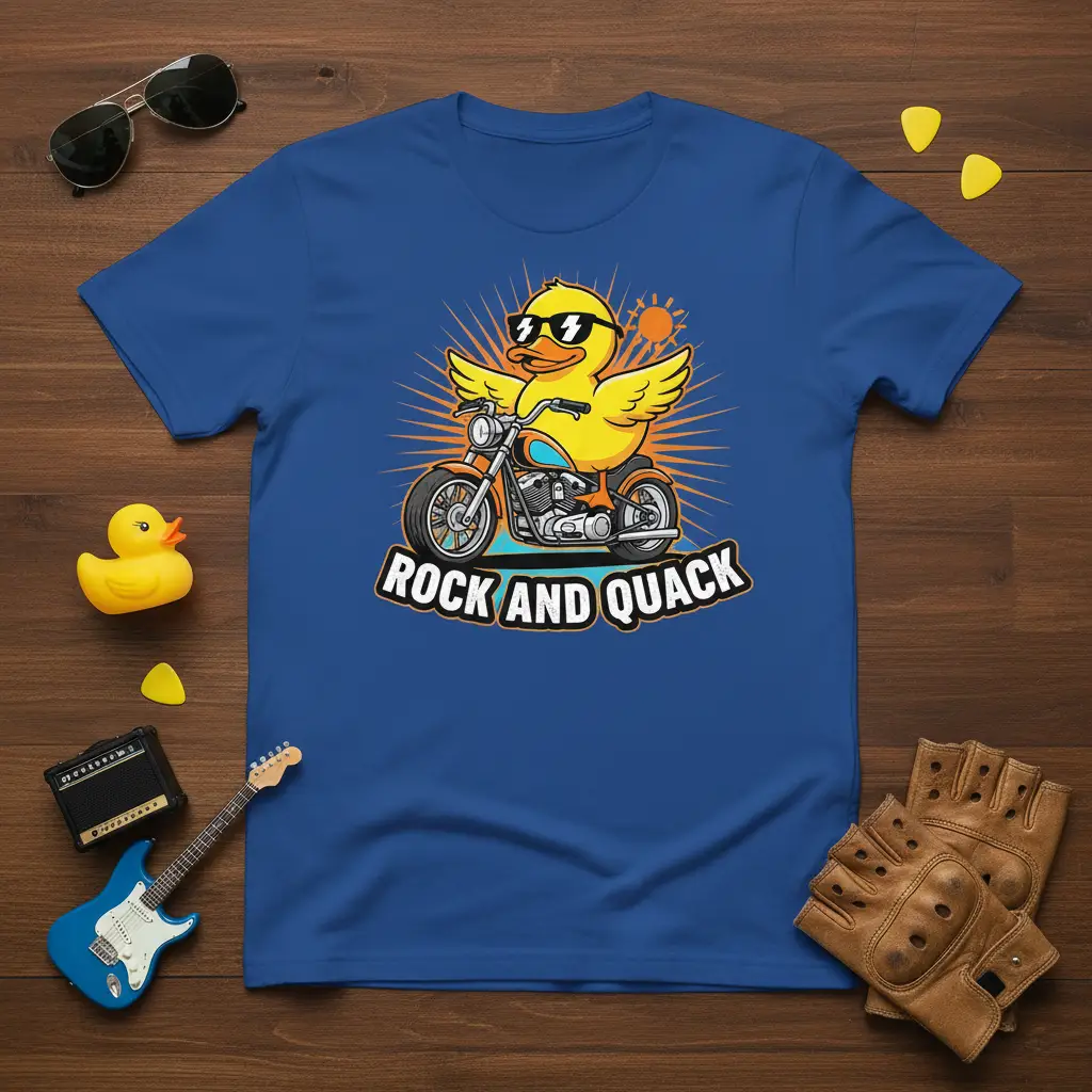 This t-shirt is more than just apparel; it’s a way to express your personality and share your sense of humor. The “ROCK AND QUACK” design captures a spirit of fun and adventure that resonates with many. It’s a unique piece that stands out, offering a fresh take on graphic tees. Embrace the joy of a good pun and the thrill of the ride with this exceptional t-shirt.