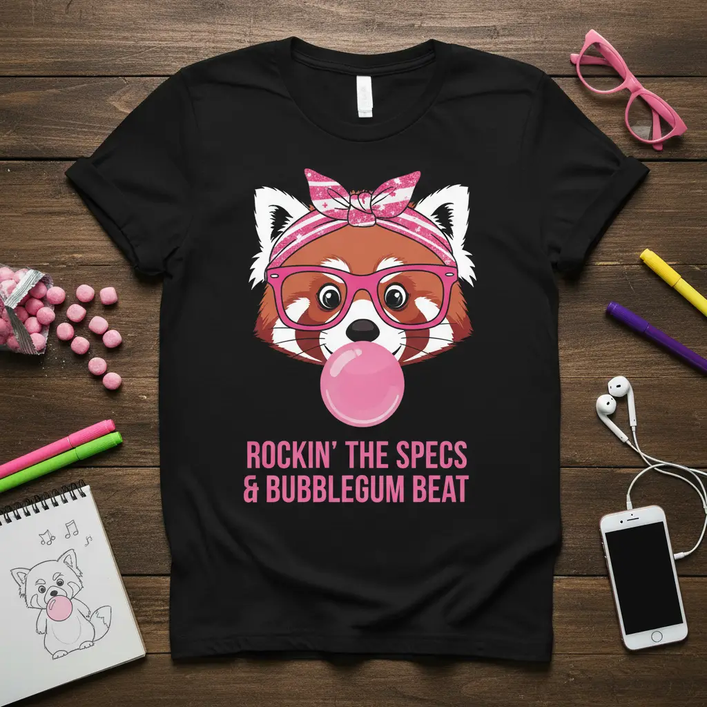 Rockin’ the Specs & Bubblegum Beat: A Unique Red Panda Design