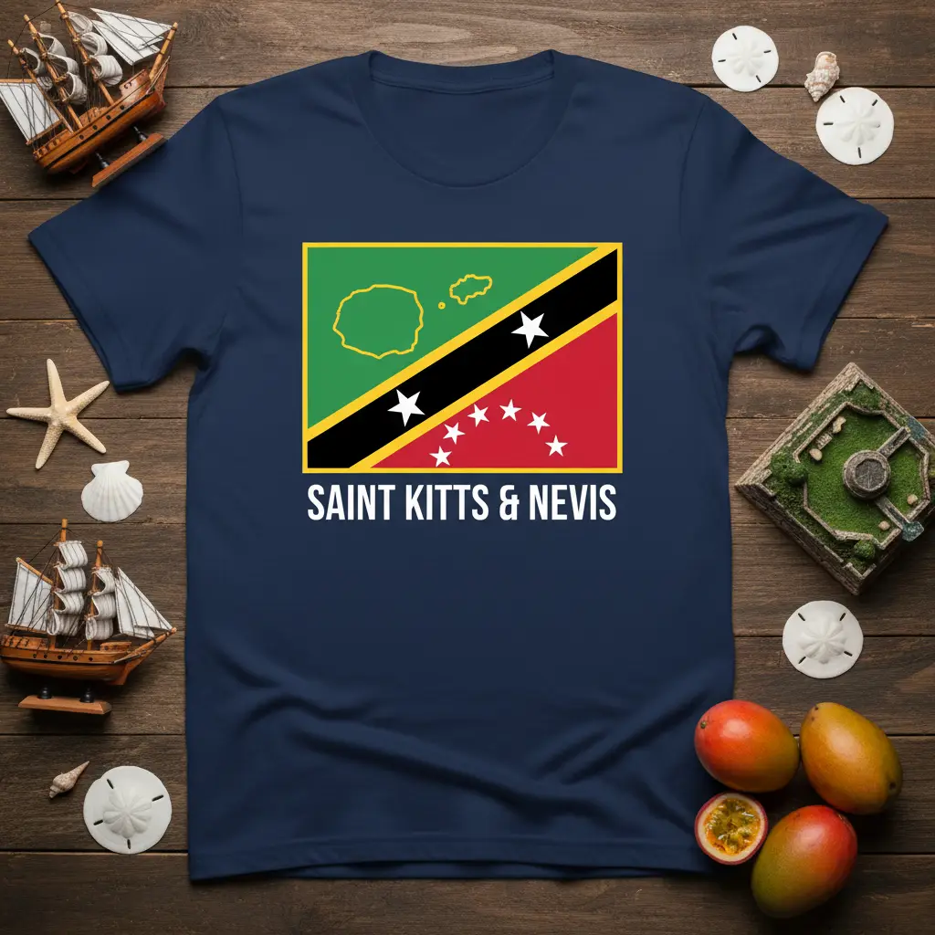 SAINT KITTS & NEVIS pride comes alive with this uniquely designed t-shirt, perfect for showcasing your connection to this beautiful Caribbean nation. Whether you’re a proud local, a frequent visitor, or simply admire the island’s vibrant culture, this tee offers a stylish way to express your affiliation. The design prominently features the iconic Saint Kitts and Nevis flag, instantly recognizable and a symbol of national identity. Crafted for comfort and durability, it’s an essential addition to any wardrobe wanting to celebrate island life.