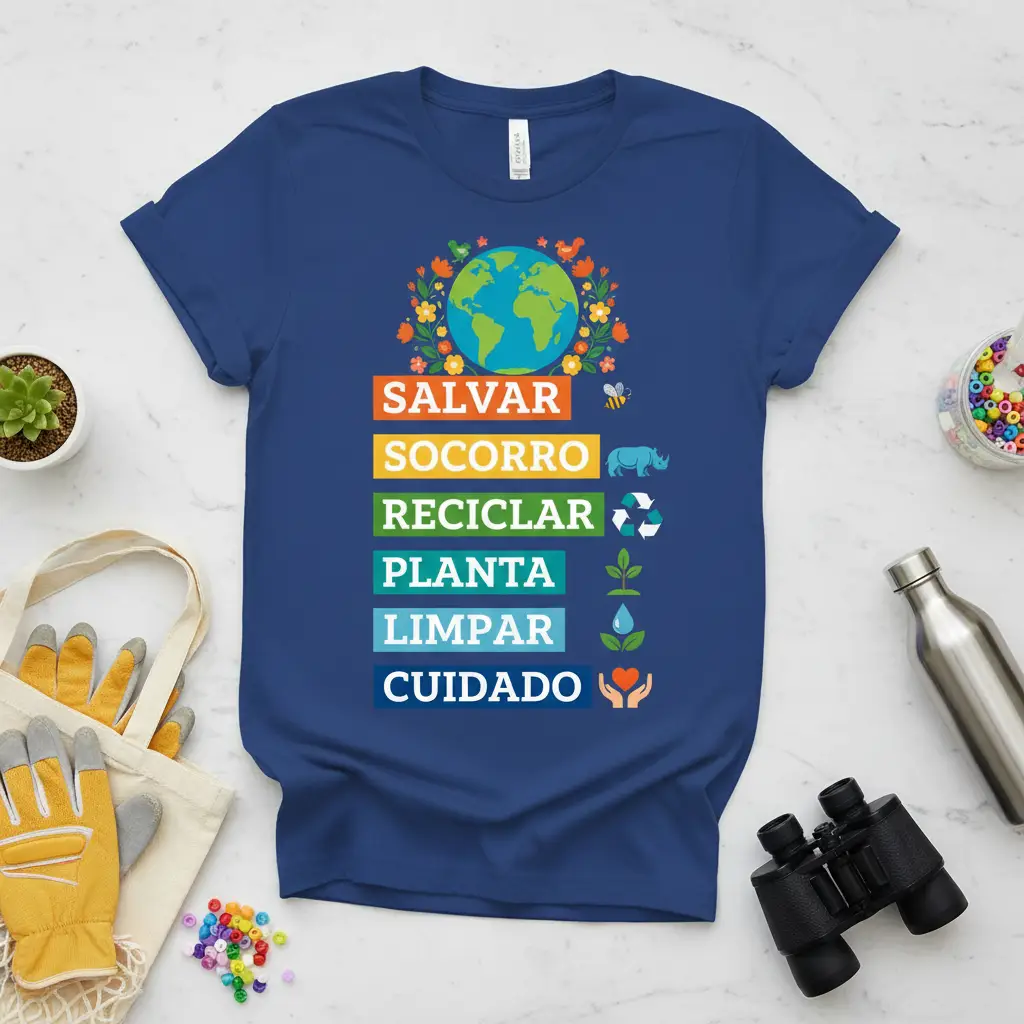 Wearing this shirt is a way to visibly advocate for environmental protection. It’s perfect for Earth Day events, nature walks, eco-conscious gatherings, or simply as a daily reminder of your values. This SALVAR SOCORRO RECICLAR PLANTA LIMPAR CUIDADO design aims to resonate with individuals who actively seek ways to reduce their environmental footprint and promote a more sustainable lifestyle.