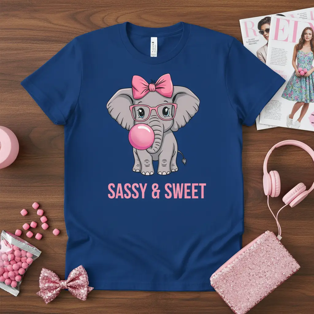 The “SASSY & SWEET” slogan is more than just text; it’s an attitude. This t-shirt is designed for those who embody both boldness and kindness, a combination that is both admirable and endearing. The graphic elephant, with its cheerful bubblegum and stylish accessories, perfectly visualizes this sentiment, making the wearer feel confident and playful.