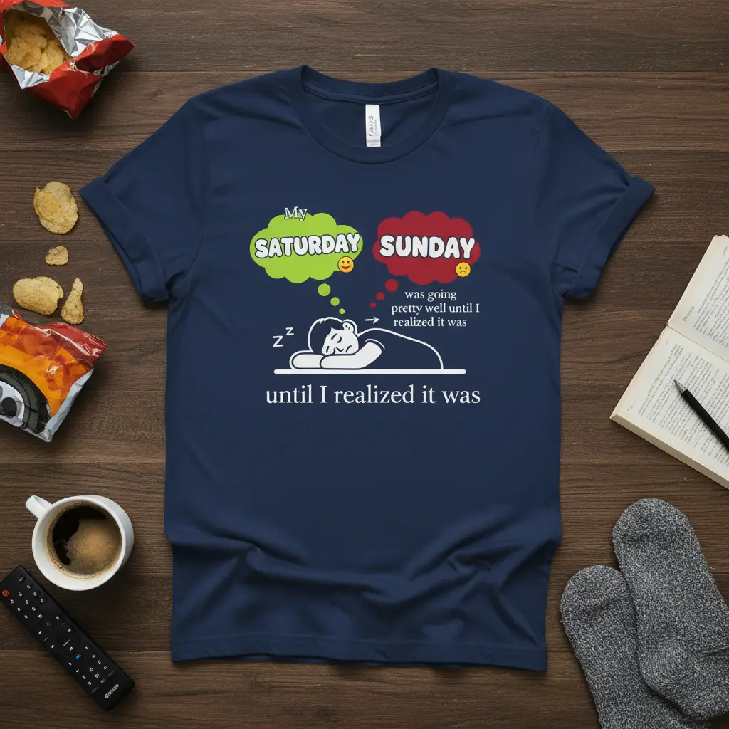 My Saturday Sunday was going pretty well until I realized it was until I realized it was, this t-shirt is designed for anyone who understands the unique emotional rollercoaster of the weekend. It perfectly encapsulates that feeling when Saturday bliss slowly gives way to the looming reality of Sunday. This witty phrase speaks volumes about the universal experience of trying to savor those precious weekend moments before the work week creeps back in. It’s more than just apparel; it’s a statement piece that brings a smile and a nod of agreement from everyone who sees it. Get ready to share a laugh and connect with others who appreciate this humorous take on time management and the weekend cycle.