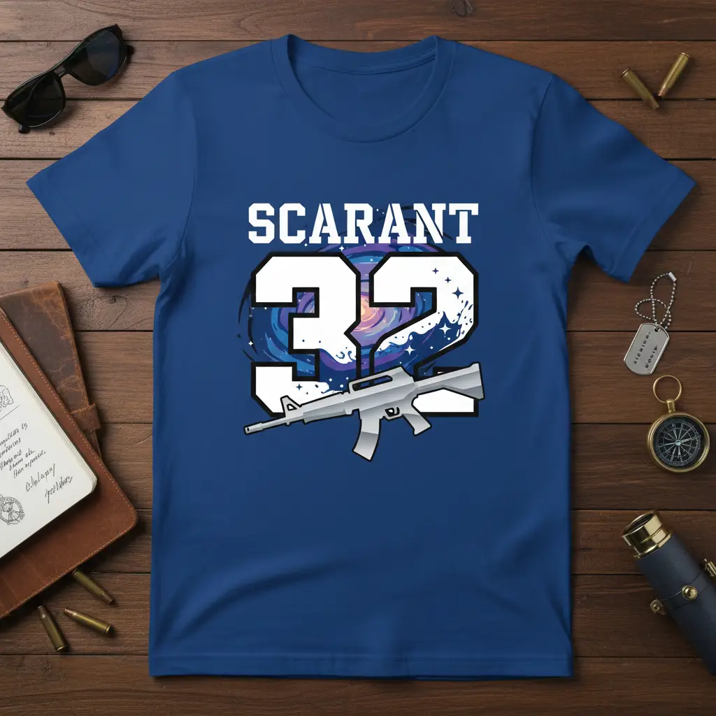 SCARANT 32 is more than just a number and a name; it’s a statement piece designed for those who appreciate bold aesthetics and unique graphics. This t-shirt captures attention with its striking combination of military-inspired imagery and cosmic artistry. It’s crafted for comfort and durability, ensuring you can wear your pride in style. Whether you’re a collector, a fan of tactical gear, or simply looking for a conversation-starting piece, this tee delivers on both design and quality.