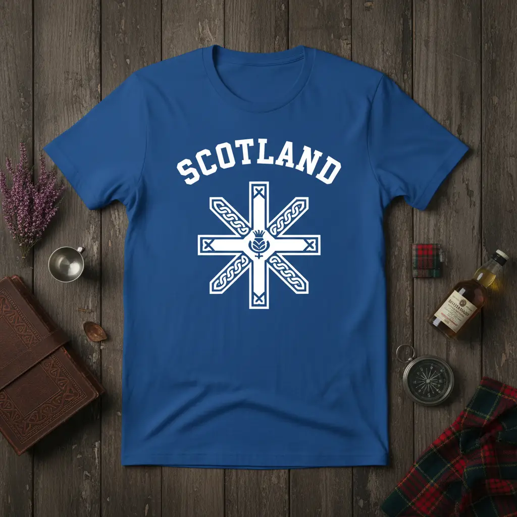 The combination of the clear “SCOTLAND” text and the detailed Celtic knot creates a visually striking design that is both modern and deeply traditional. It’s an ideal choice for anyone wanting to celebrate their Scottish roots or their love for Scotland’s vibrant culture and history. The design is crafted to be a conversation starter, allowing wearers to share their connection to this storied nation.