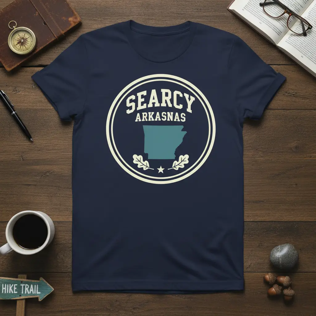 Pick from Black, Navy, Royal, Dark Heather, Red, and White to match your mood and wardrobe staples. Each colorway keeps the Searcy Arkansas design clear and photo-ready for everyday wear.
