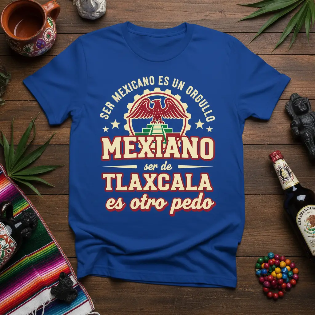 This design goes beyond a general celebration of Mexican identity; it highlights the specific pride associated with being from Tlaxcala. It acknowledges that while all Mexicans share a common bond, regional identities add unique layers to this rich cultural mosaic. The inclusion of “ser de Tlaxcala es otro pedo” adds a distinctive flair, suggesting a special, perhaps even more intense or unique, expression of pride.