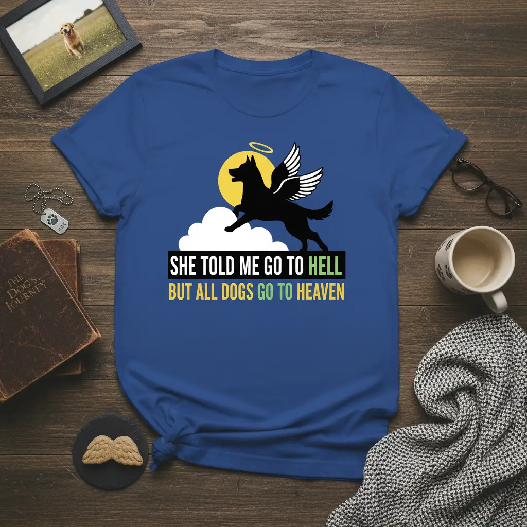 Get Your “She Told Me Go To Hell But All Dogs Go To Heaven” T-Shirt Today!