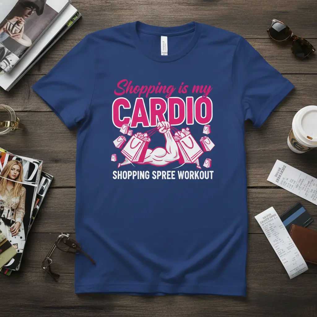 This “Shopping is my Cardio Shopping Spree Workout” t-shirt is crafted for individuals who embrace their love for shopping as their primary form of exercise. The design vividly illustrates the dedication and passion that goes into a true shopping adventure. It’s a conversation starter and a badge of honor for all the dedicated shopaholics out there. Let this tee be your uniform as you conquer your next retail expedition.