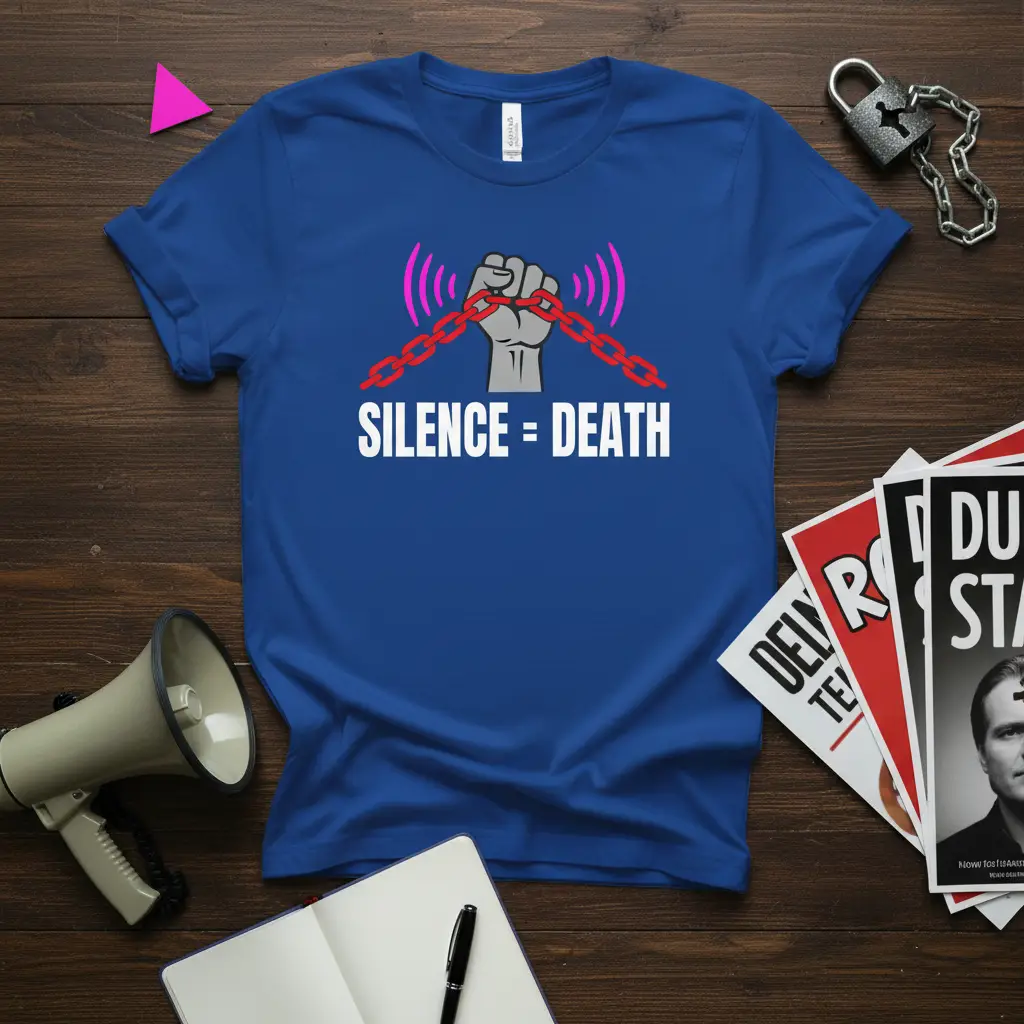 This Silence = Death T-Shirt is a bold declaration for anyone passionate about social justice and activism. Featuring a powerful graphic and impactful slogan, this tee is designed to spark conversation and inspire change. It’s a comfortable and durable way to wear your message proudly.