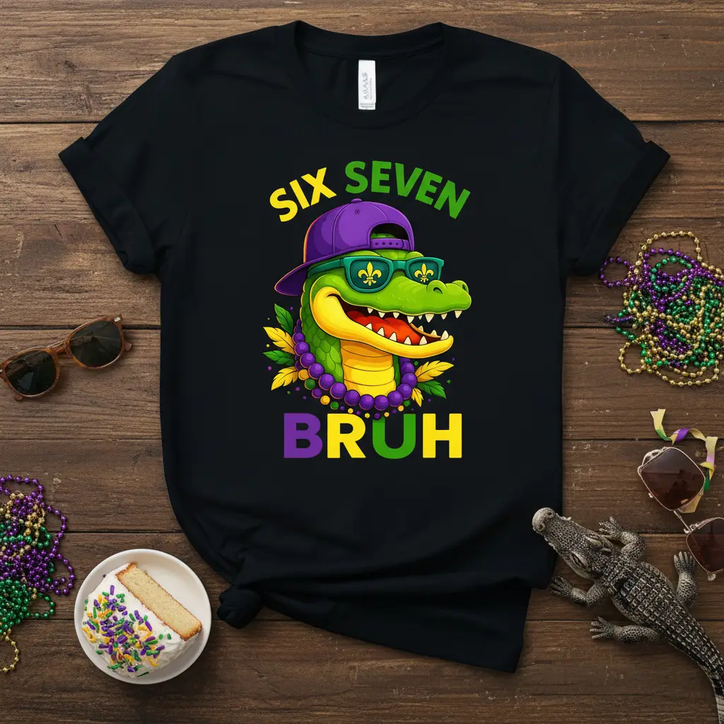 Six Seven Bruh Mardi Gras Alligator T-Shirt