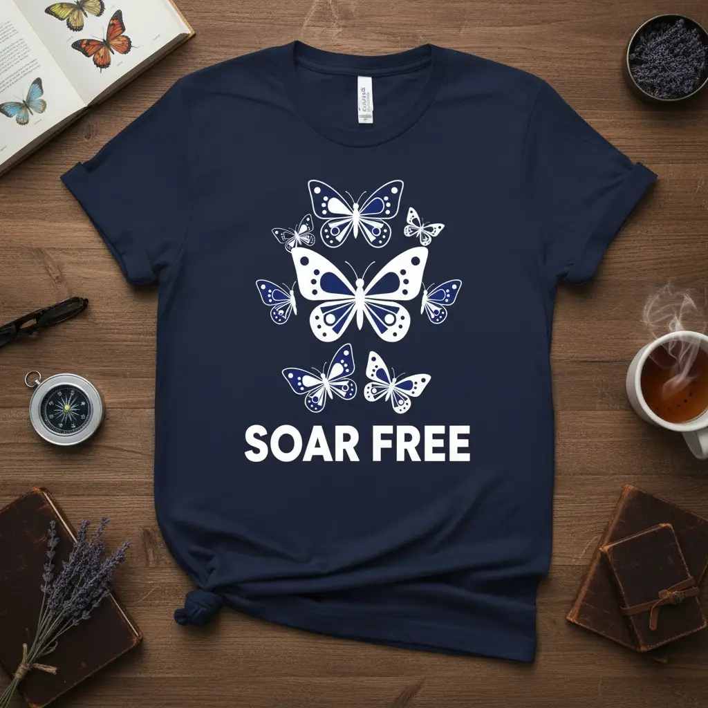 Whether you’re looking for a unique gift or a personal reminder to embrace your journey, the “Soar Free” t-shirt is an excellent choice. It embodies a spirit of optimism and encourages the wearer to always reach for their highest potential. The combination of the beautiful butterfly graphic and the powerful message creates a truly special piece of apparel.